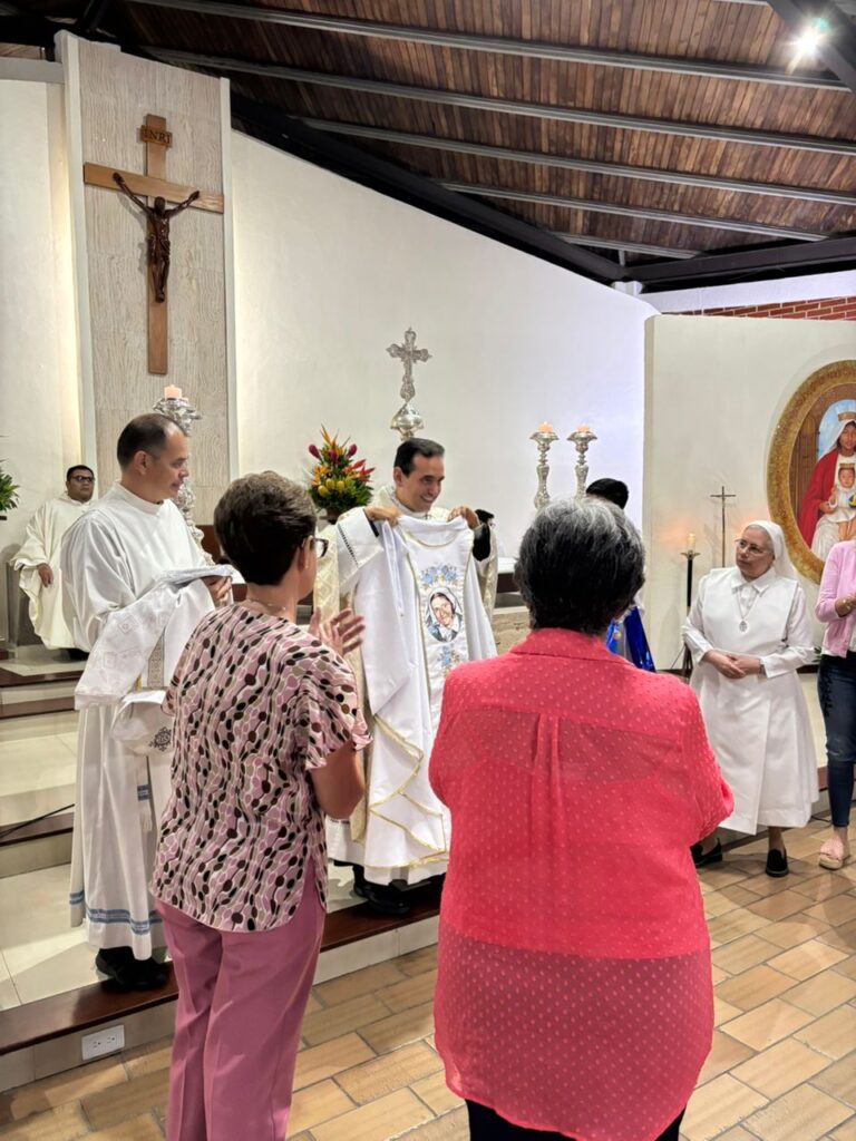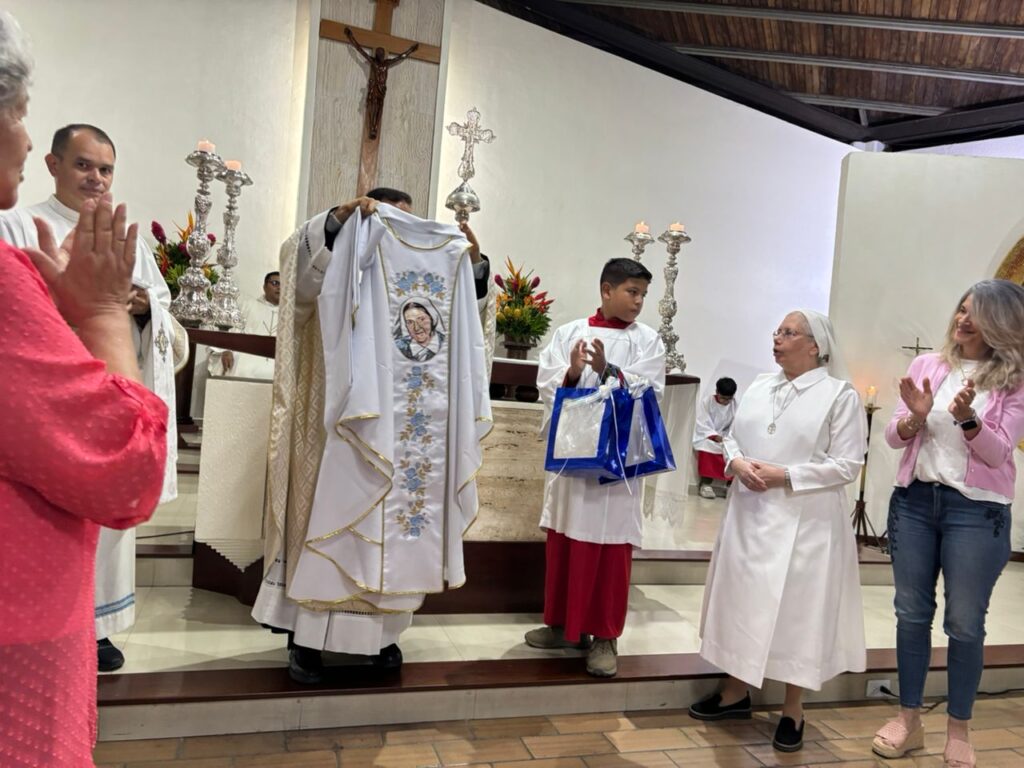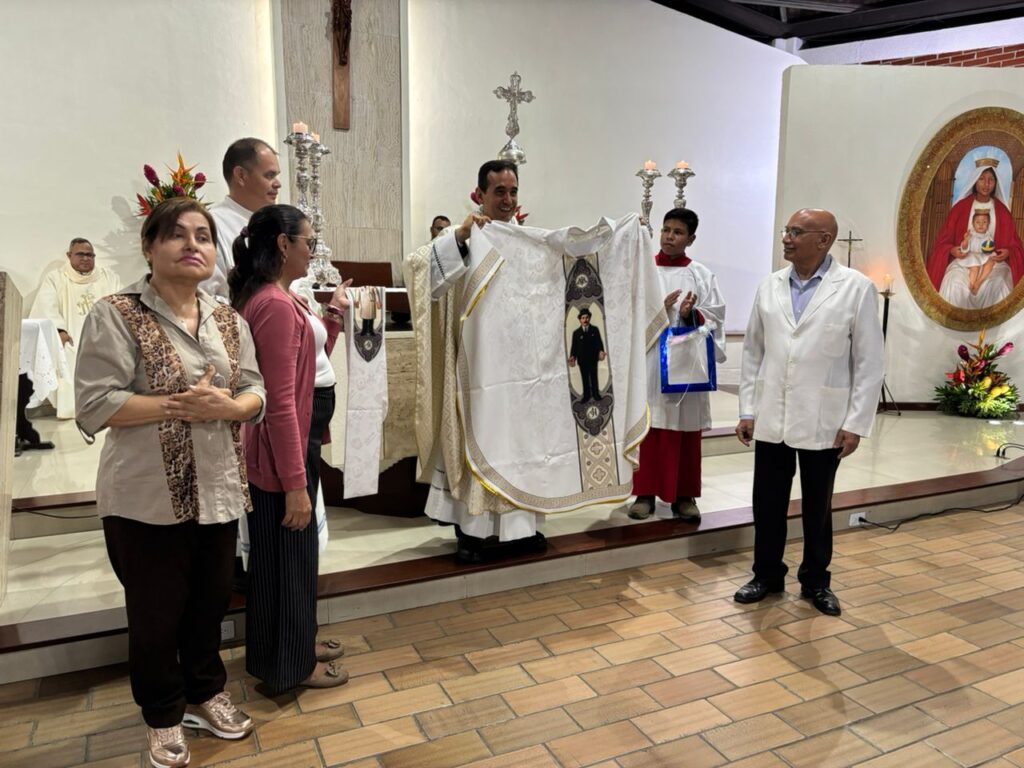 La ceremonia estuvo llena de fe y emotividad, con la participación activa de los feligreses y diversos grupos parroquiales que lo acompañaron en este significativo momento. Durante la celebración, se realizó un hermoso acto donde se le obsequiaron las Casullas de los beatos Madre Carmen Rendiles y José Gregorio Hernández, símbolos de nuestra rica tradición católica.